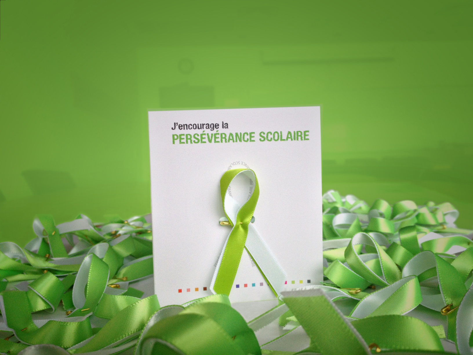 An initiative of CREVALE (Comité régional pour la valorisation de l’éducation), the green-and-white ribbon has been the Québec-wide symbol of school perseverance since 2010. It expresses respect for and commitment to school perseverance.