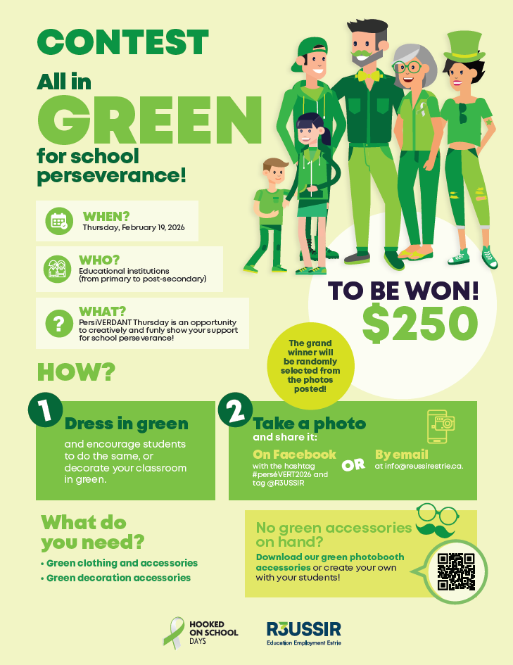 What? Green Thursday is an opportunity to creatively and funly show your support for school perseverance!