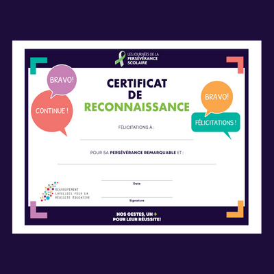 Remettez un certificat à un jeune, un collègue ou un parent qui se démarque par sa persévérance.