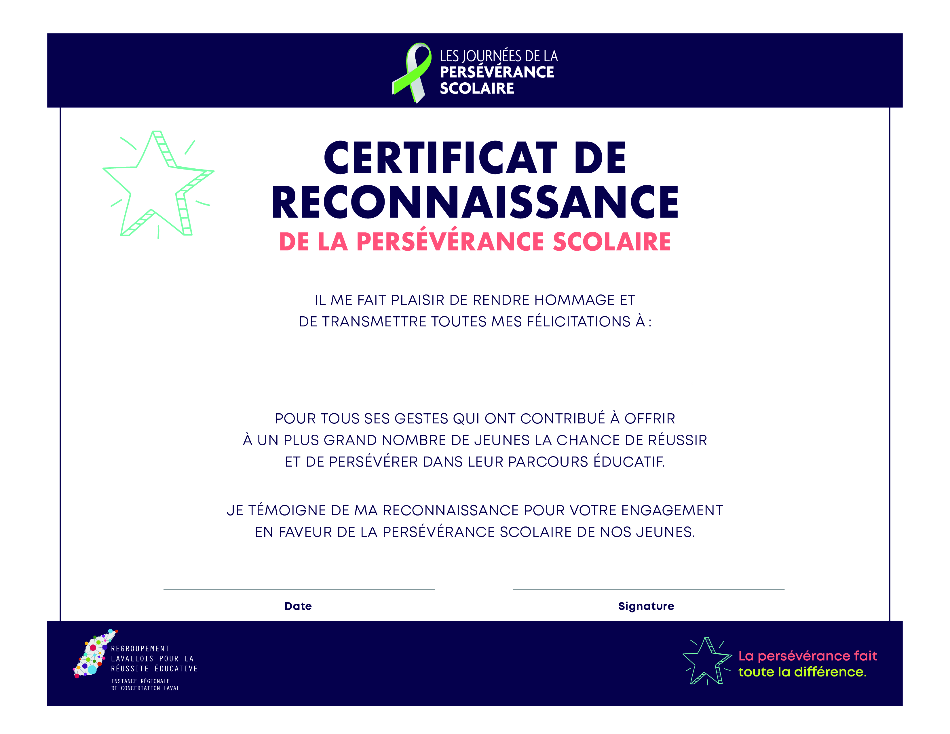 Soulignez l’engagement ou la persévérance d’une personne avec une reconnaissance officielle et inspirante. Une manière efficace de renforcer le sentiment d’accomplissement et d’appartenance.