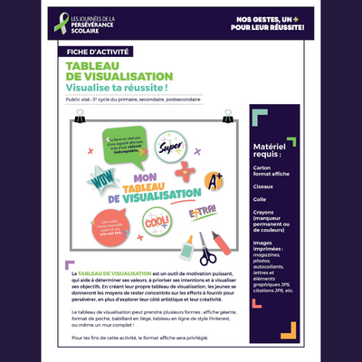 Une foule d'outils téléchargeables à votre portée pour animer des activités ou afficher votre appui à la persévérance scolaire des jeunes et des adultes!