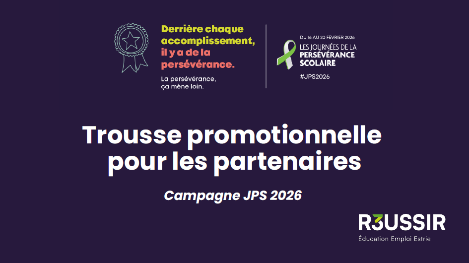 C’est avec enthousiasme que R3USSIR vous invite à prendre part à cette 17e édition des Journées de la persévérance scolaire (JPS), qui aura lieu du 16 au 20 février prochain!