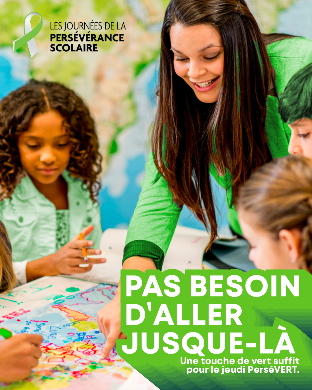 Le 19 février 2026, on met le VERT à l’honneur en signe d’adhésion à l’importance de la persévérance scolaire. C’est facile et tout le monde peut participer!